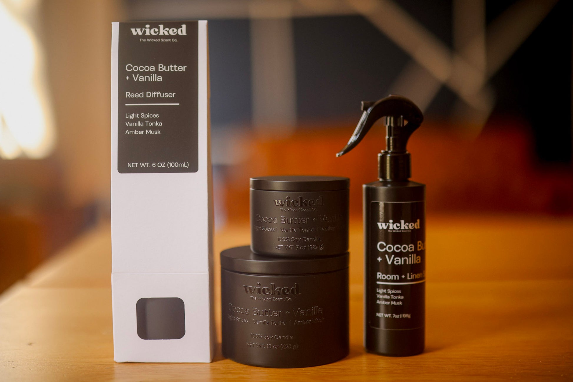 Transform your space into a sensory retreat with The Wicked Scent Home Collection — featuring our hand-poured candles, fine-mist room + linen spray, and elegant reed diffuser. Each product is crafted with phthalate-free, eco-friendly ingredients for a clean, lasting fragrance experience.