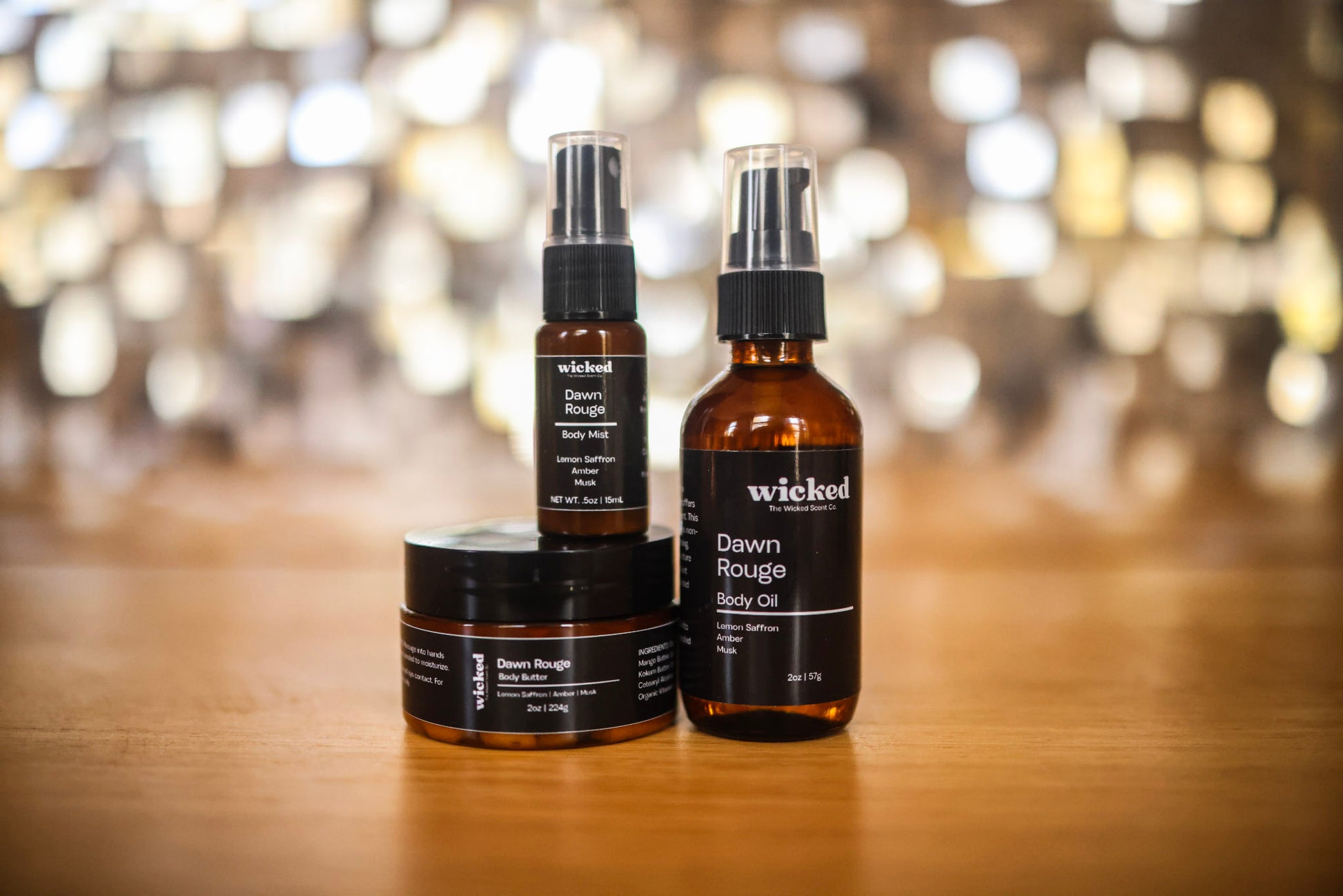 Dawn Rouge consists of Lemon Saffron, Amber, Musk