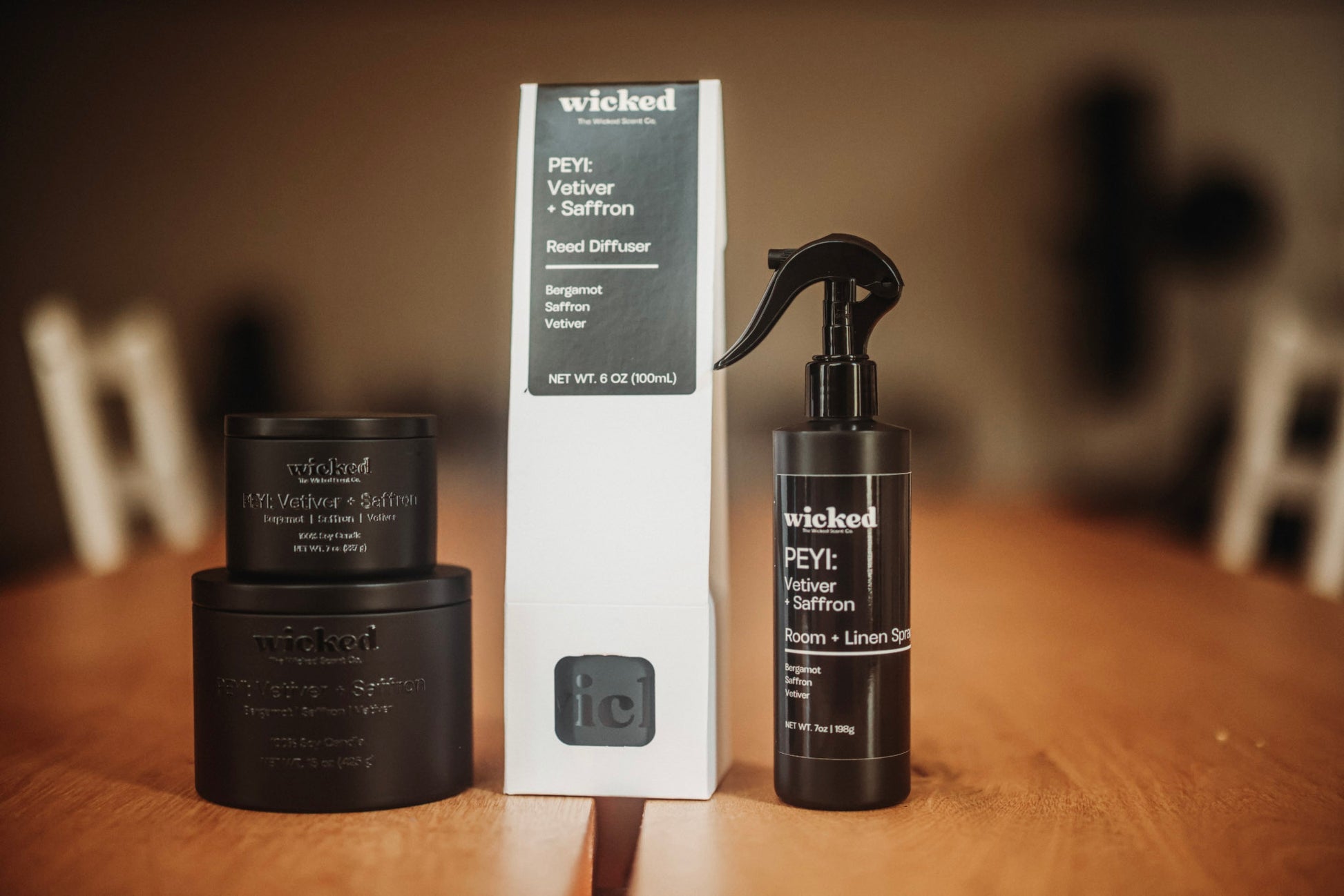 Transform your space into a sensory retreat with The Wicked Scent Home Collection — featuring our hand-poured candles, fine-mist room + linen spray, and elegant reed diffuser. Each product is crafted with phthalate-free, eco-friendly ingredients for a clean, lasting fragrance experience.
